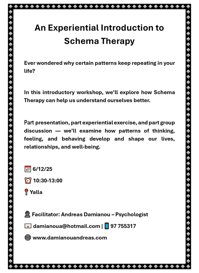 Εισαγωγικό, βιωματικό εργαστήριο για τη Θεραπεία Σχημάτων.