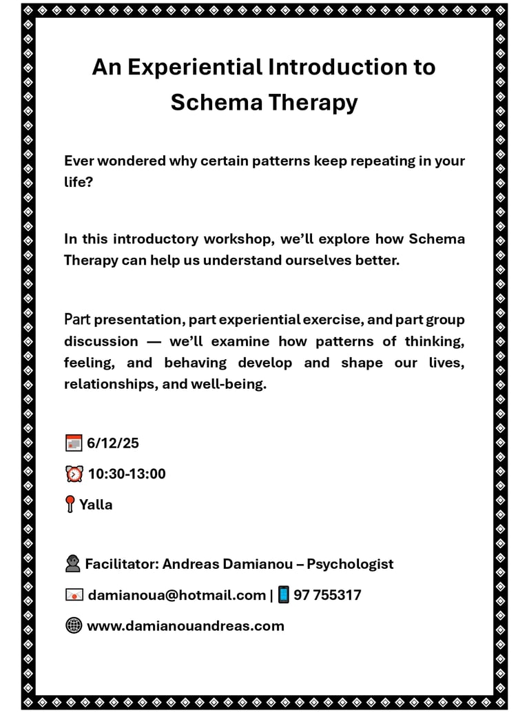 Εισαγωγικό, βιωματικό εργαστήριο για τη Θεραπεία Σχημάτων.
